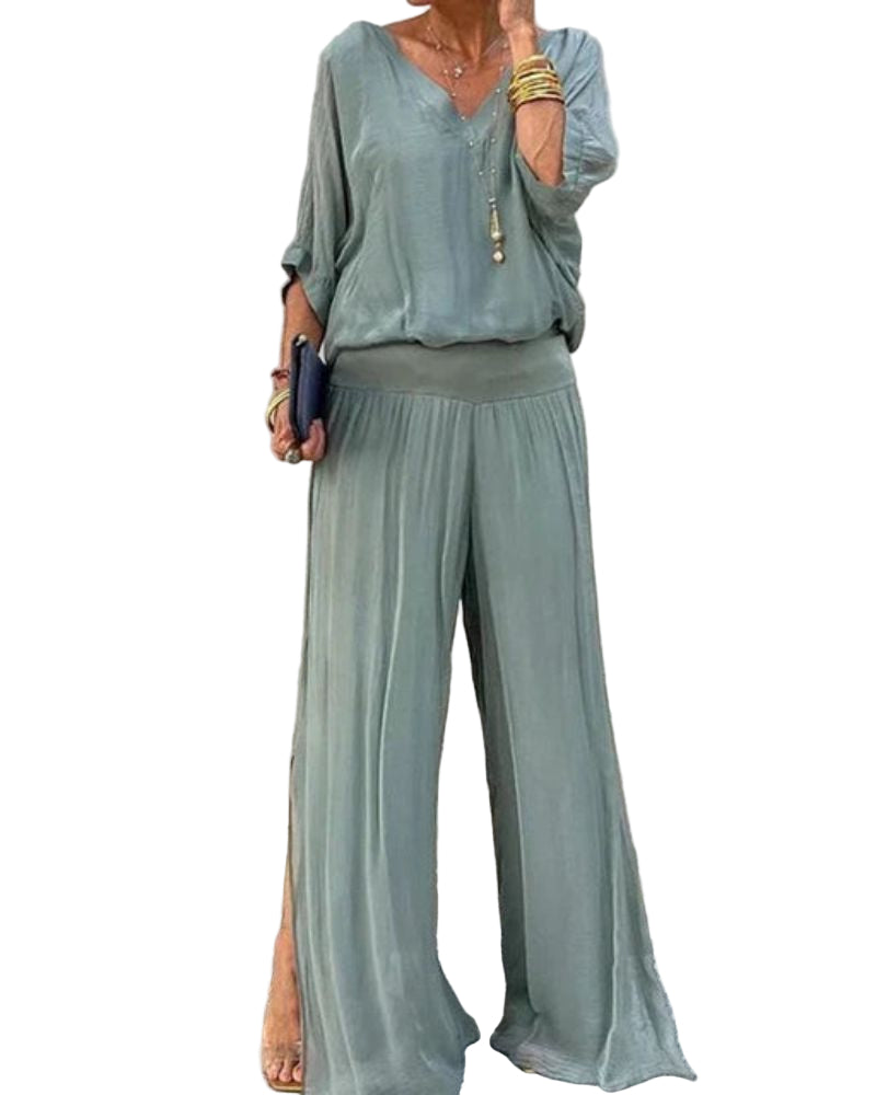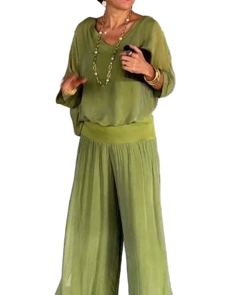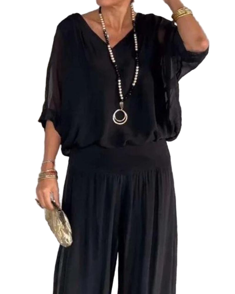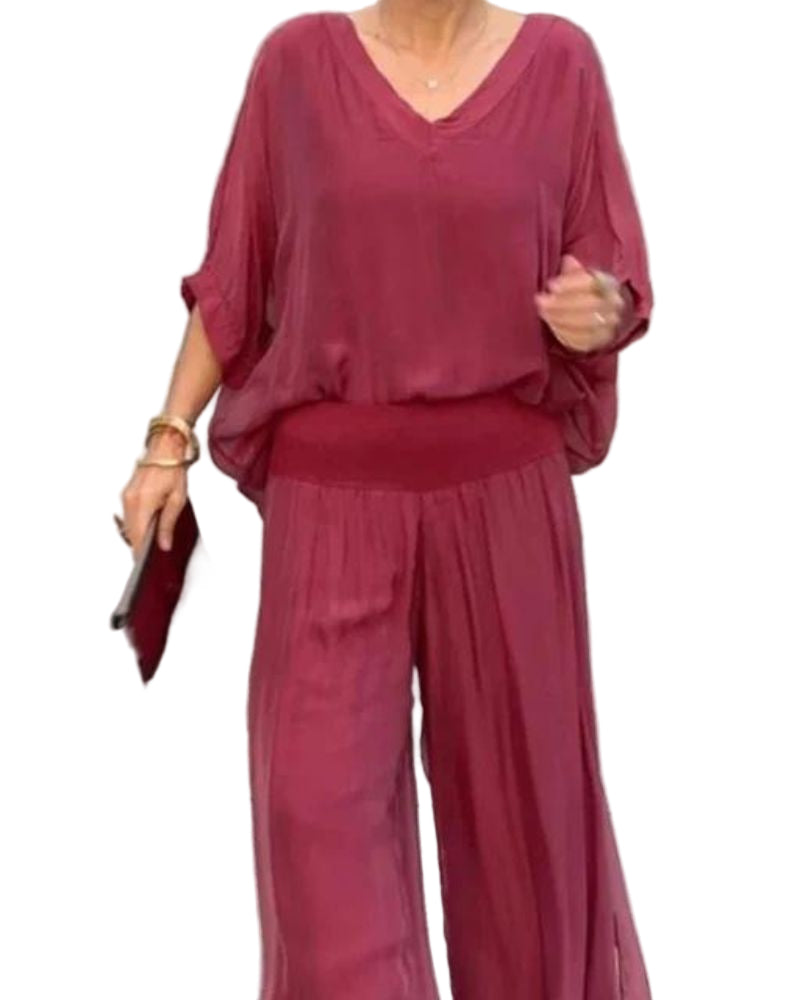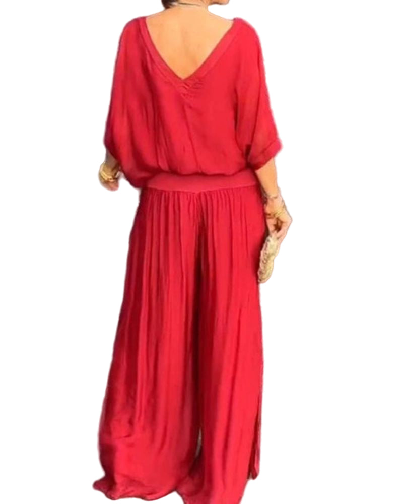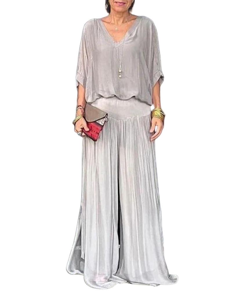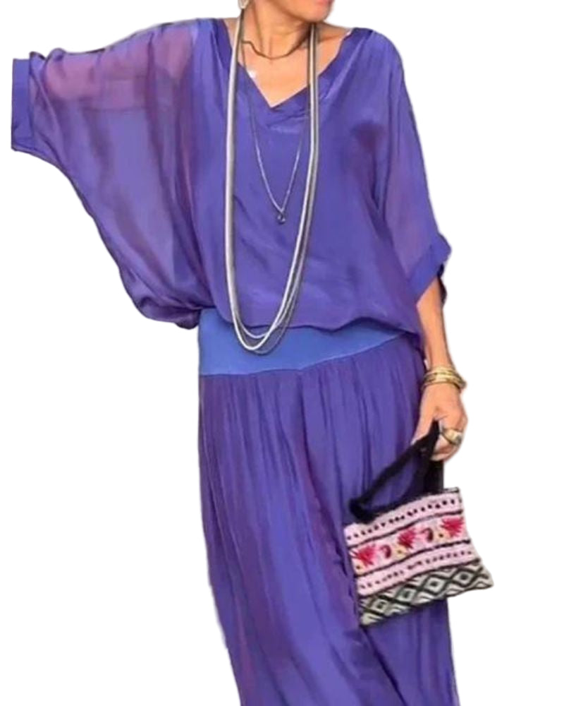Vivez le parfait équilibre entre confort et élégance avec notre ensemble fluide, conçu pour sublimer votre silhouette.Chaque pièce est réalisée avec soin et souci du détail, offrant une sensation douce et légère pour un look tendance et raffiné.Doté d’une blouse féminine à manches larges et col en V, associée à un pantalon ample, cet ensemble est idéal pour toutes les saisons. Frais, moderne et confortable, il est parfait pour toutes les occasions : sorties entre amis, événements, soirées ou moments décontractés.