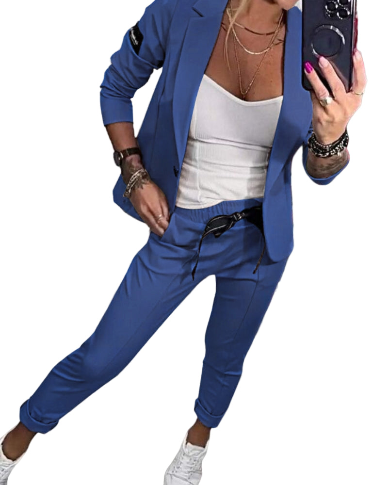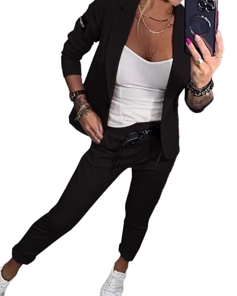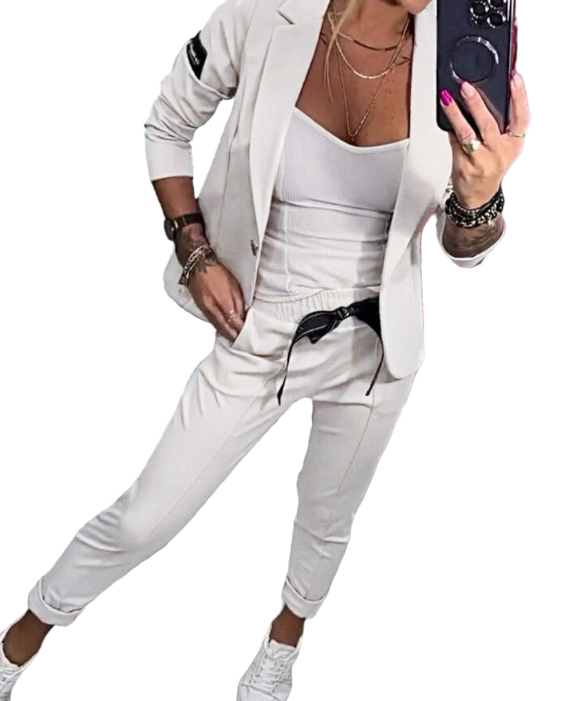 Doux, stylé et confortable, notre ensemble est plébiscité par toutes nos clientes !Cette combinaison polyvalente offre un look chic et soigné pour toutes les occasions.L'ensemble, composé d'un top, d'une veste et d'un pantalon, marie avec finesse confort et sophistication pour une élégance moderne.