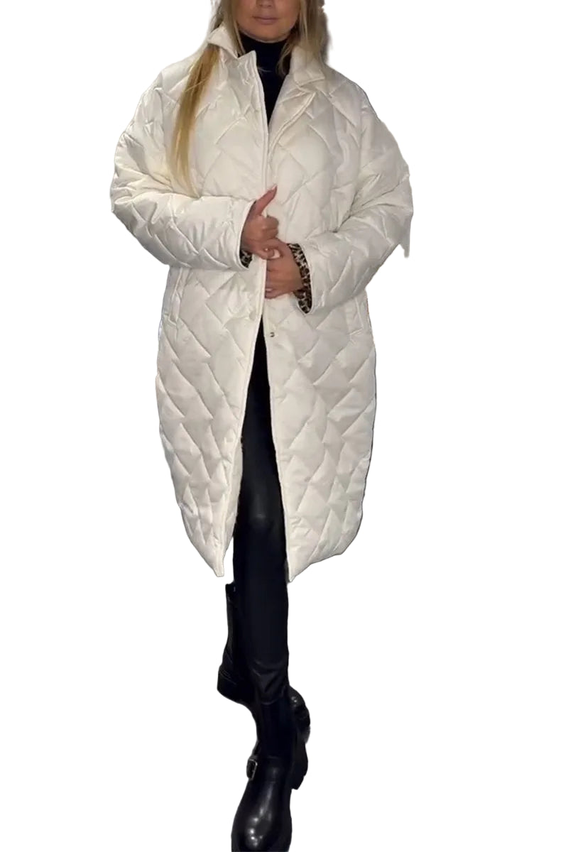 Le manteau matelassé qui allie élégance intemporelle et audace. Son extérieur raffiné et minimaliste dissimule une doublure chic à imprimé léopard, révélée au niveau des poignets ou à l'intérieur pour un style unique qui attire toujours les regards.